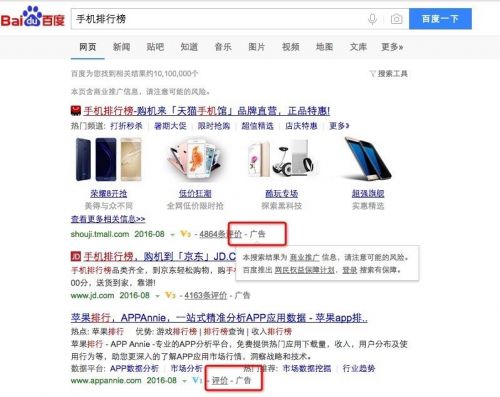 作為受影響最大的百度搜索,TechWeb查詢發(fā)現(xiàn),目前百度的搜索結果頁面的廣告樣式已經(jīng)由原來的“商業(yè)推廣”變成“廣告”二字描述了。